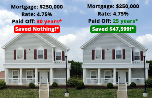 The house above on the right could cost $47,599* less than the house on the left even though both houses are exactly the same, have exactly the same loan and with the exactly the same term and interest rate.